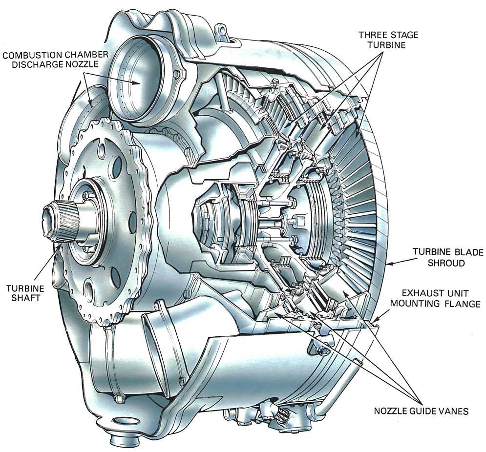 Similar to compressors axial turbines seen on most modern jet airliners are more efficient than their radial counterparts at higher flow rates. However, radial turbines are still being used on modern aircraft for auxiliary power units. Figure 1 below shows a single-shaft three-stage axial turbine i.e. the three turbine stages drive all of the compressor stages through a single shaft.